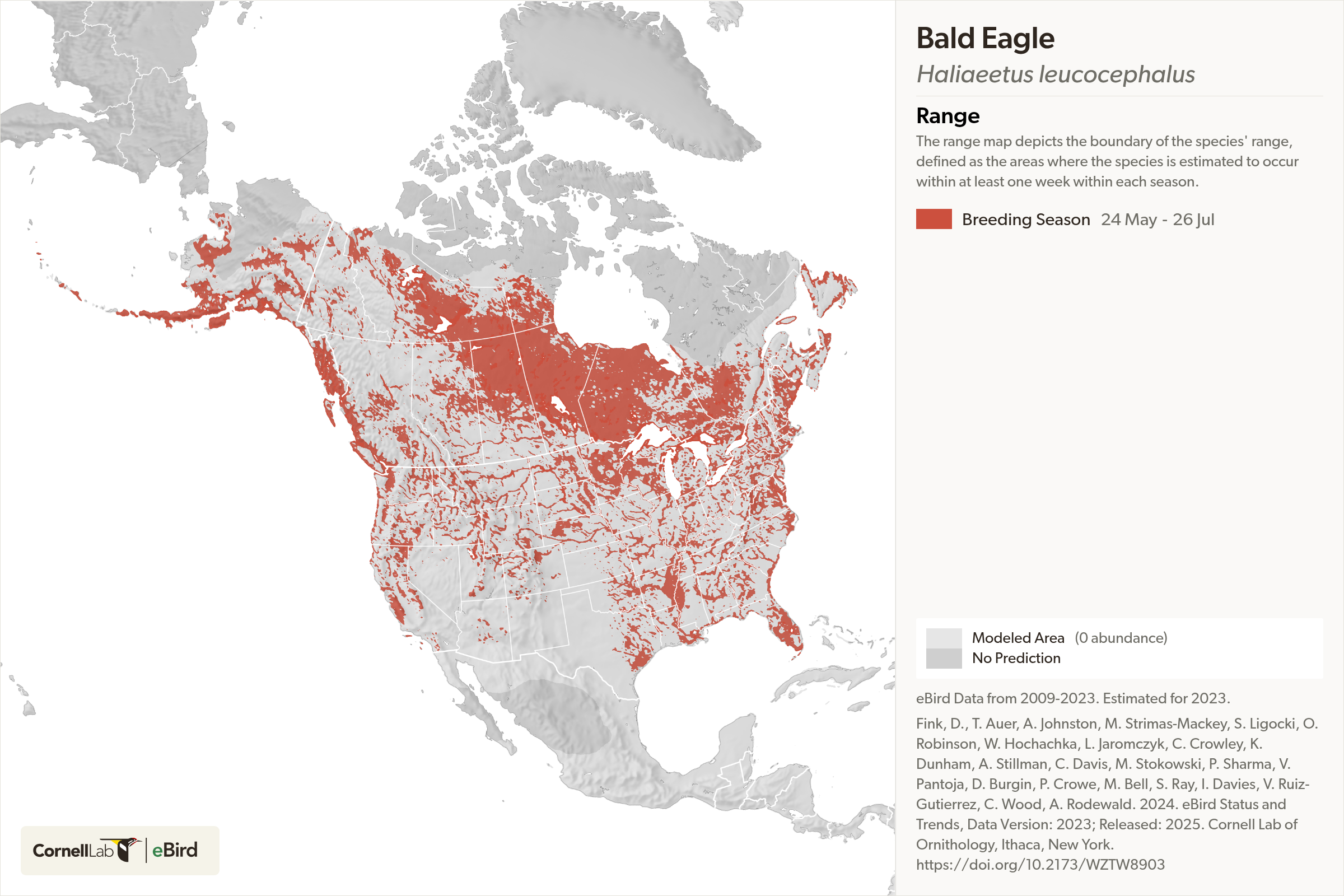 Breeding distribution of the Bald Eagle. Source: Cornell Lab of Ornithology eBird Status and Trends.