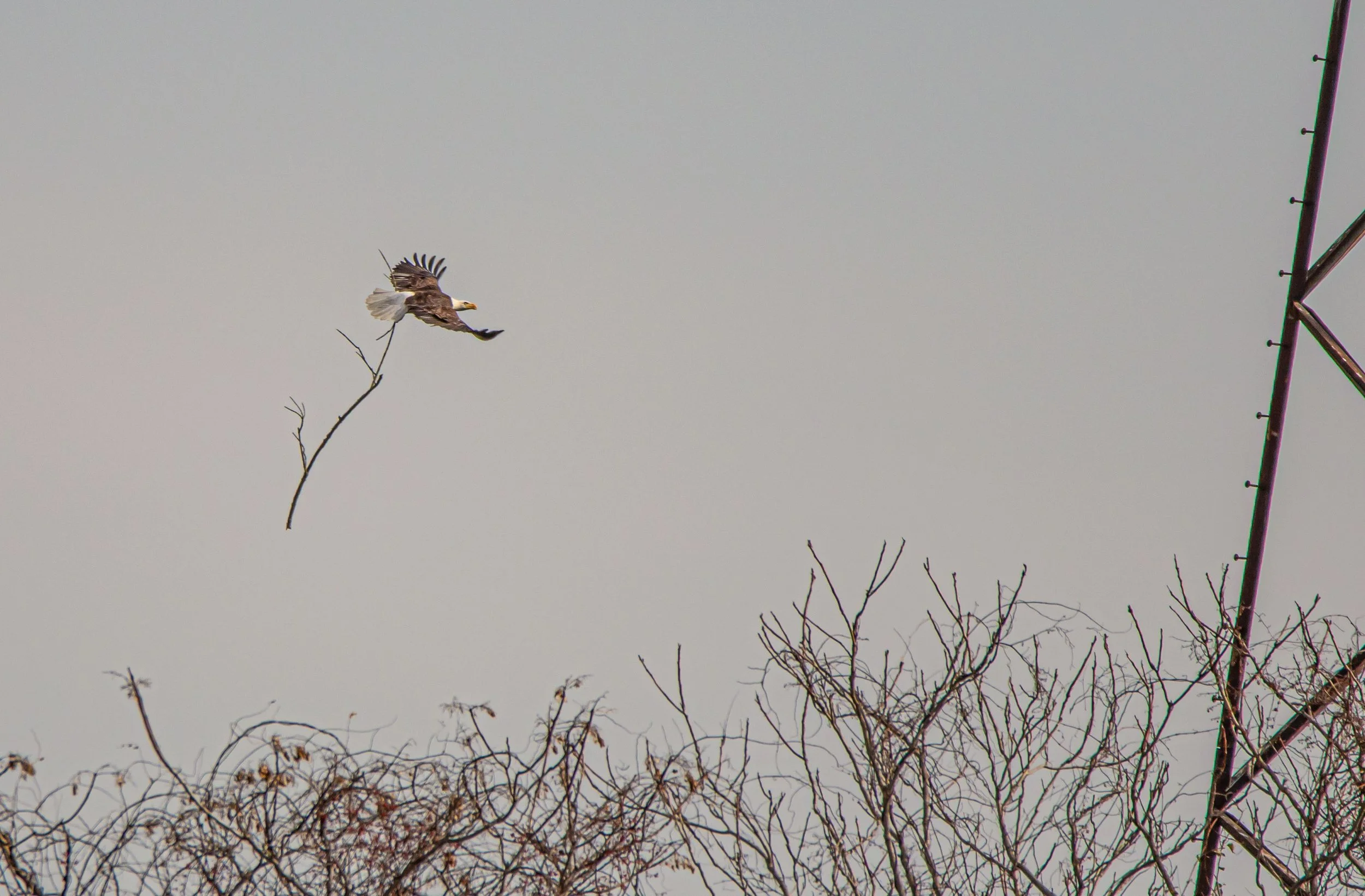 Bald Eagle carrying a stick to the nest. Photo by Barbara J. Saffir