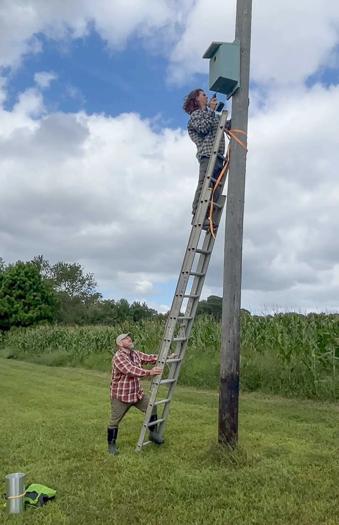 Landowners may choose to monitor and maintain the nest boxes themselves or we request that they allow volunteers to access the boxes, with advanced notice of course. Diane’s nephew Julian is planning to monitor and maintain the nest box on the family farm, with training and instruction from the program.