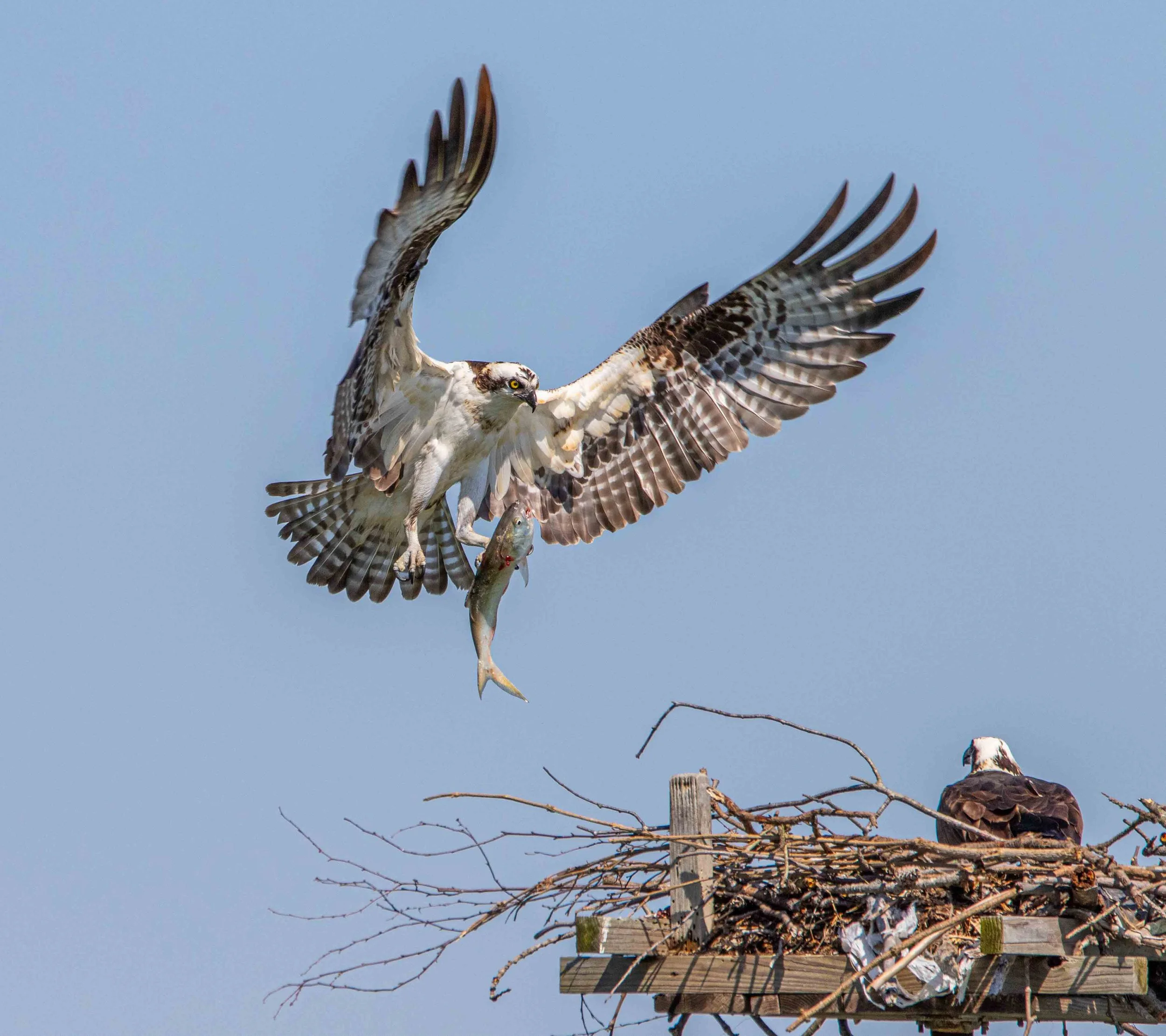 Banner photo of Osprey delivering fish to the nest by Barbara J. Saffir